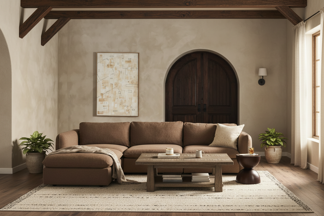 Light oak wood combined with a solid travertine countertop.